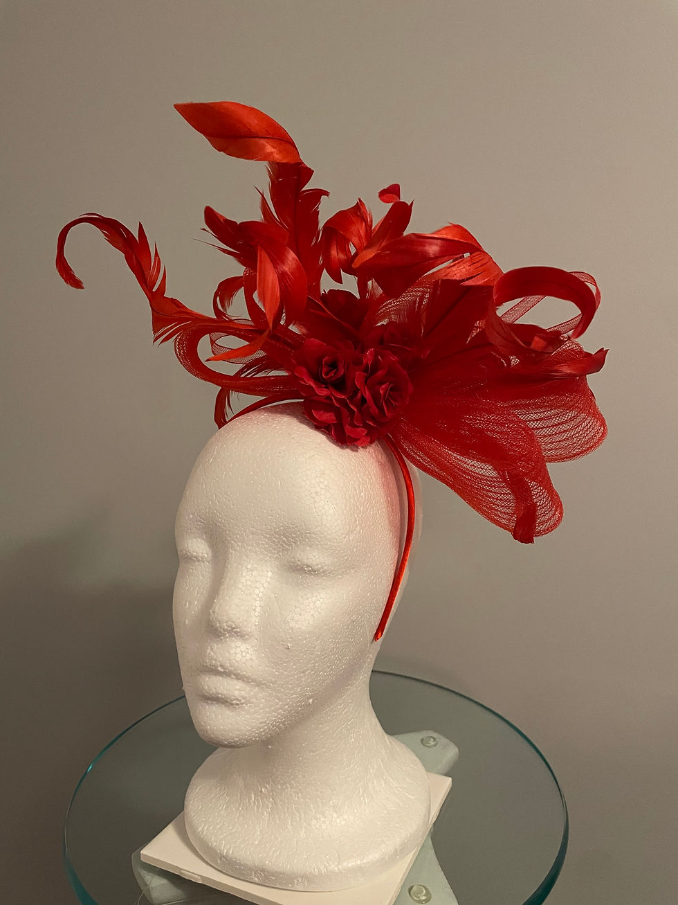 Kentucky Derby Red Fascinator "Red to the Quill""